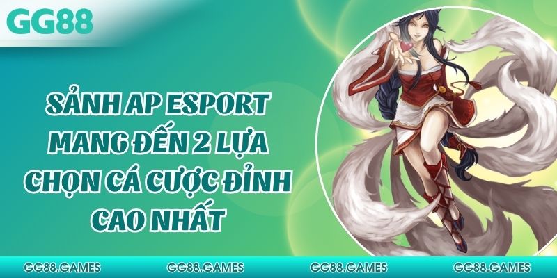Sảnh AP Esport được biết đến như sân chơi cung cấp cá cược chuyên nghiệp tại GG 88 với tỷ lệ kèo cực kỳ phong phú. Sự thu hút của sân chơi còn nằm ở việc thay đổi tỉ lệ kèo liên tục theo mỗi diễn biến trận đấu. Người dùng sẽ có cơ hội tham gia nhiều trận đấu với mức độ bao phủ quốc tế, tạo ra sự phong phú và hấp dẫn.
